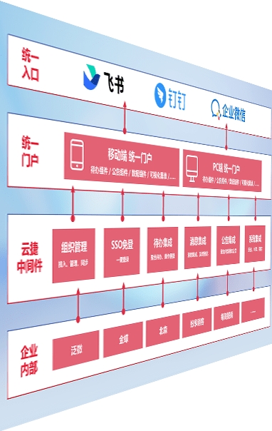 对协作平台提供支持服务,,支持企业应用与协作平台对接,,,包含组织同步、、消息集成、、、待办集成等。。。。支持目前主流的协作平台:钉钉、、企微和飞书。。。。